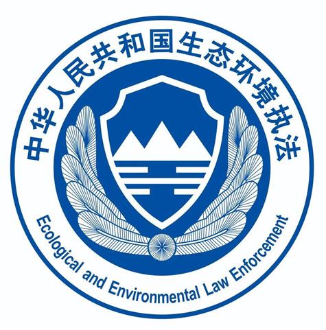 生態環境執法標識采用圓形輪廓,基礎色選用藍色系。標識圖案用中文標注“中華人民共和國生態環境執法”,并配以英文注釋。