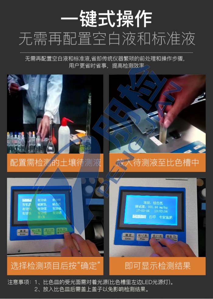 測一個土壤樣品(N、P、K)≤15分鐘,同時檢測十個土壤樣品(N、P、K)≤50分鐘;